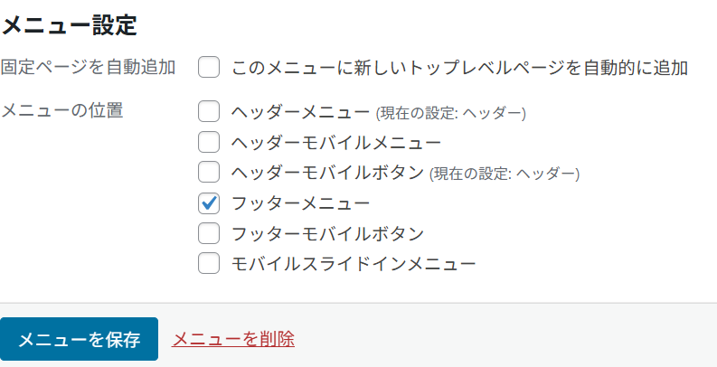 ヘッダーメニューとフッターボタンの設定