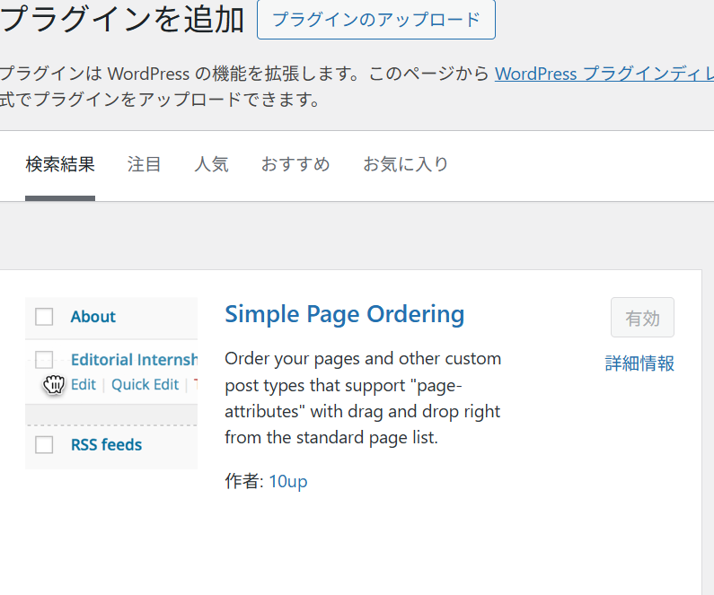 このプラグインをインストールして有効化するだけで、ダッシュボードの固定ページ一覧が移動できる。よく使うホームボタンが上に、動かせる
